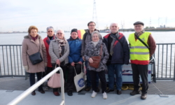 Acht leden van Vrienden van de Vlaamse Veren waren mooi op tijd voor de afspraak aan het Steenplein te Antwerpen. We namen op zaterdag 16 november 2019 de Waterbus om 12u met bestemming Liefkenshoek. Het was leuk dat we met de Aqua Diamond konden varen, dit is het eerste vaartuig dat in dienst kwam bij de Waterbus, namelijk op 1 juli 2017.